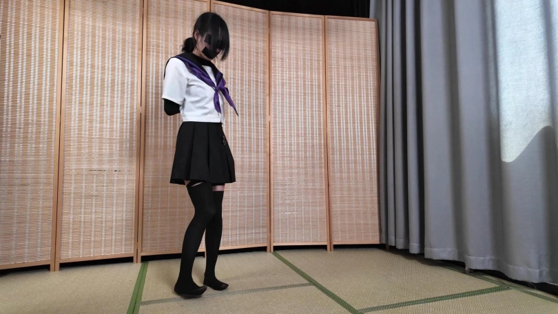 胶带蒙眼,封嘴,双手被胶带缠绕