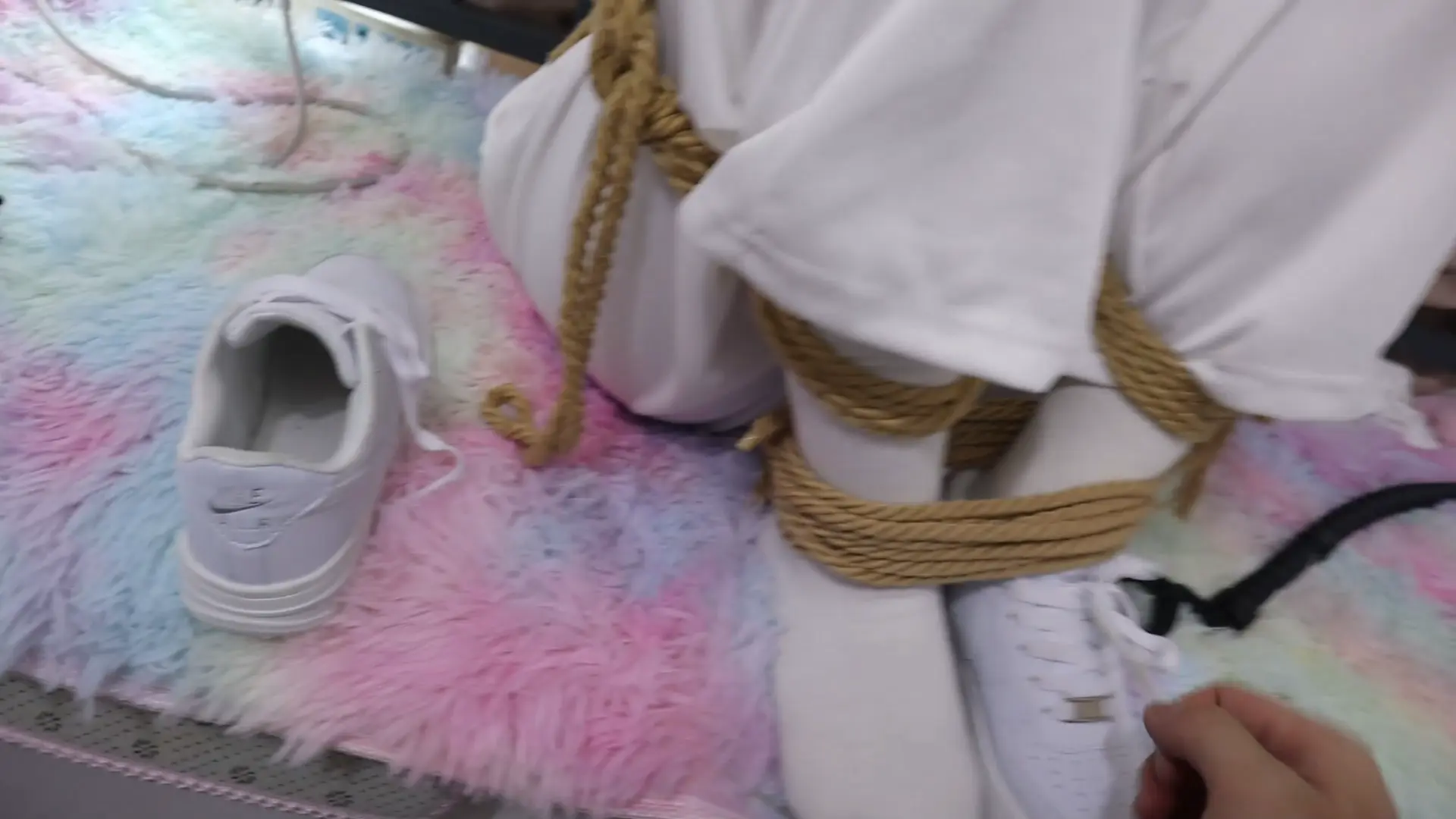 【荷约少女】刚烈女孩H好久不见,一见面就死死的加股绳绑在栏杆上,拿的长鞭打狠狠的抽打,拉股绳听到喘息声加打 打的越狠教的越惨一开始被打的翻白眼、不过看你的表情你一定也很舒服吧,脱下鞋子玩白袜脚之后t