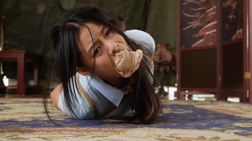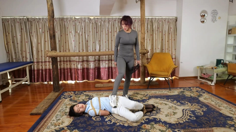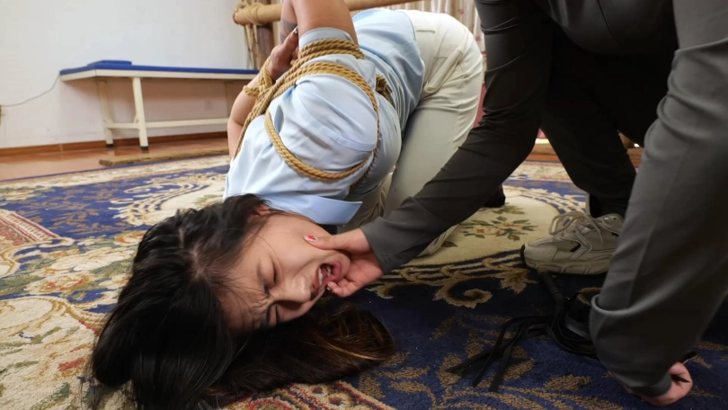 凉兮被老板带到了女人面前,女人见凉兮即使被绑着也丝毫不服软,便命令其他人退下,自己要亲自拷问。起初女人还故作温柔,语气平和的与凉兮讲条件,她凑到凉兮的近前,突然被凉兮用身体撞倒。刚刚温柔的女人突然像变了一个人,开始发疯似的拷问凉兮,经过一番折磨后,她拿掉了凉席堵嘴的丝袜,让凉兮乖乖的交代一切。凉兮辱骂女人是个疯子,并告诉她即便把自己打死也什么都不会说,气急败坏的女人对凉兮的拷打更加用力,甚至用脚踩踏她的肚子,最终凉兮昏迷了过去。女人让手下给她换一身衣服,重新绑好囚禁起来。