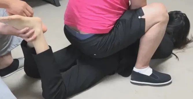 女搜查前往搜索证据不料被两名反派抓住,女搜查一打二不敌,被抓住脚裸,随后更是被压在身上绑住双脚,二人开始逼问女搜查证据在哪里,女搜查不屈服,随后二人开始对女搜查的脚心展开了疯狂的折磨,女搜查痛苦不堪