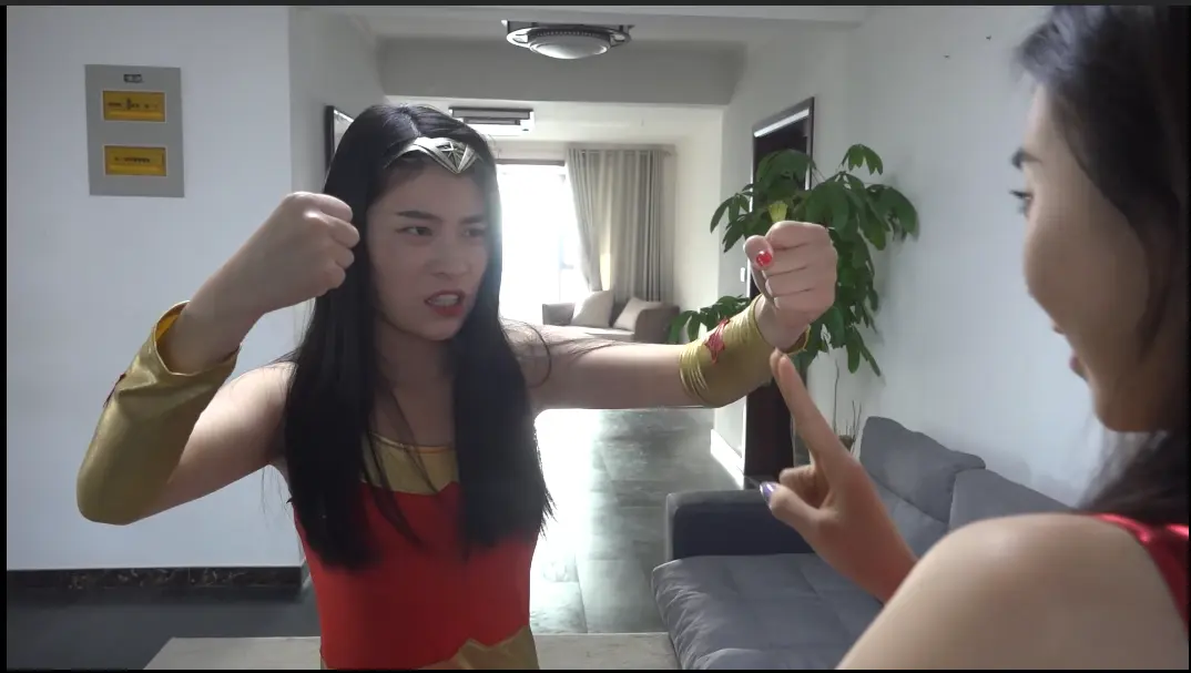 神奇女侠接到消息抓捕黑化女超人,女超人使用控制技能操纵神奇女侠在自己身上做一系列羞耻的事情。
