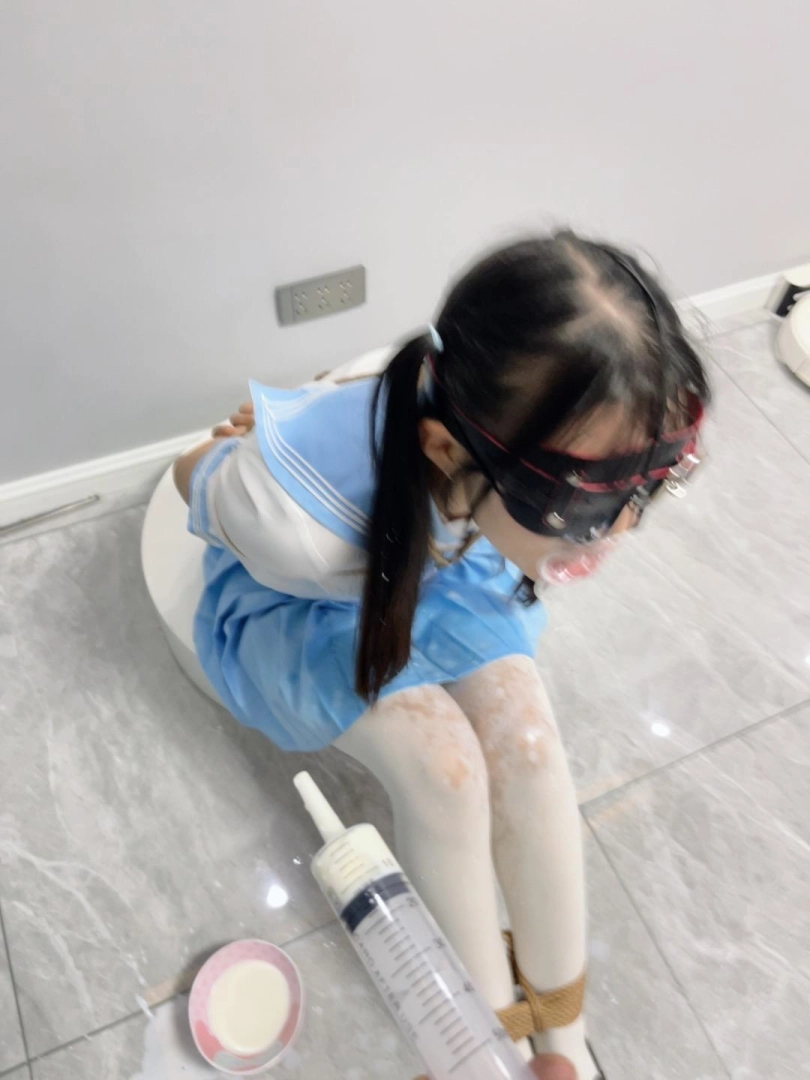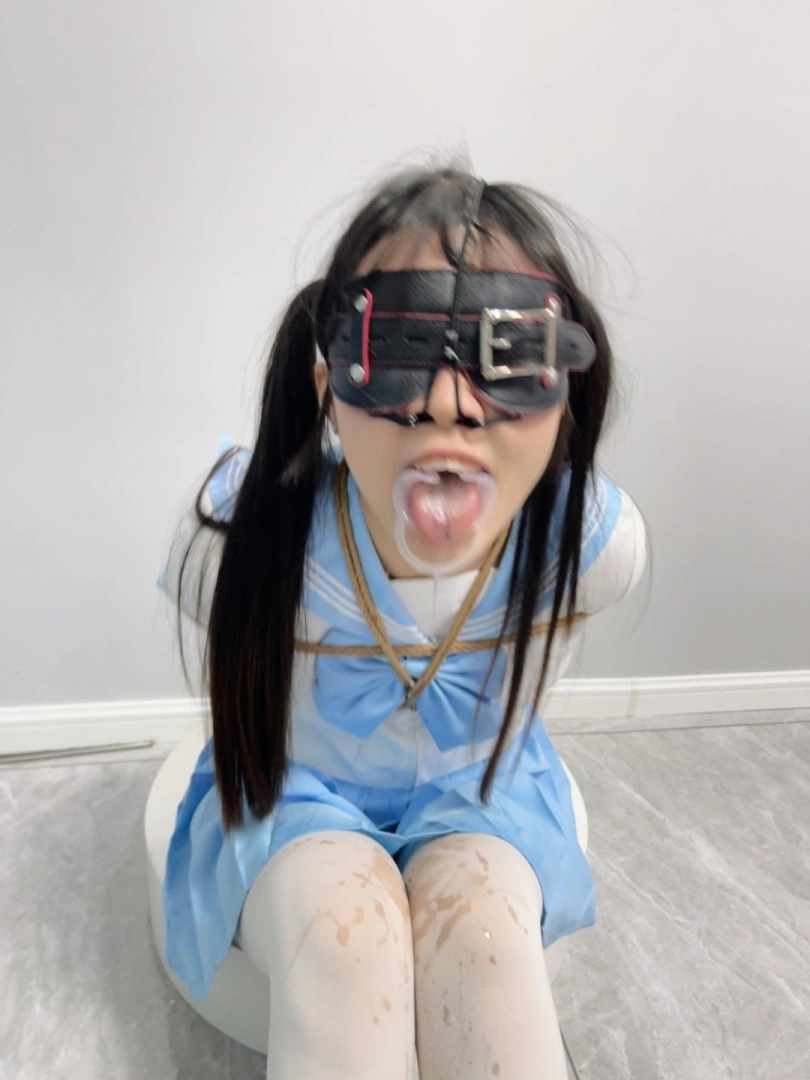 内容:首先给妹子戴上眼罩和羞耻的三向鼻钩、扩口器,鼻子一定要高高拉起到微微疼痛为止,然后把鼻钩固定在背后的绳子上强制抬头。鼻钩一戴上,妹子精致的小脸就被完全破坏了,变成了羞耻的奴隶。因为开口器的缘故,妹子无论怎样都无法控制口水的滴落,只能任由口水滴在心爱的jk裙子和白丝上。由于脚腕也被十几道绳子紧紧绑住,两条白丝小腿只能羞耻的互相磨蹭,可爱极了~