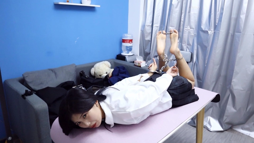 【趾间艺束】小欣制服丝袜家中镣铐自缚 被快递员要挟挠 脚挠全身TK 手铐脚铐脚趾铐 丝袜控必看!大量玩丝袜内容!