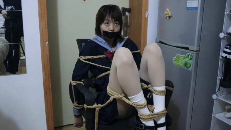 【荷仙少女】忽闪着大眼睛懵懂的看着被紧缚在椅子上的可爱水手服少女B本本,全身都是绳子挣脱连腿和脚都被起来不会很容易吧,白袜玛丽珍鞋不停的被蹬掉挣扎中还要被揩油后玩弄,露出了痛苦的表情 双视角纯捆绑