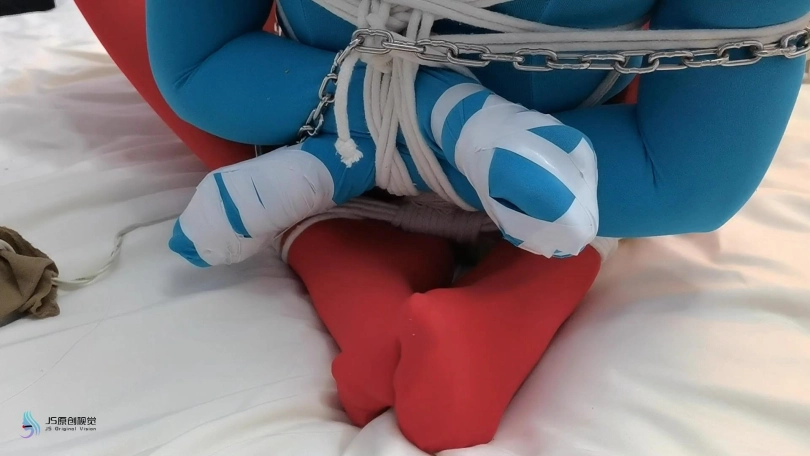 两人身上穿着五颜六色的丝袜,用胶带将她们的手缠绕,嘴里塞进丝袜,再套上丝袜头套,外面用胶带缠绕封堵,防止她们将丝袜吐出来。让她们的双腿彼此交叉,这样能使她们靠的跟进。用绳子将她们捆绑好,两人身体也被绳子绑在一起。然后给她们脖子上戴上项圈,并用铁链链接项圈,缠绕她们的身体。这样就使她们面对面的绑在一起。胸部放进去TD,刺激着Ru头,用快乐棒调到最大马力,持续不断的刺激着她们的敏感地方。很快她们身体开始抽搐起来,达到GC。