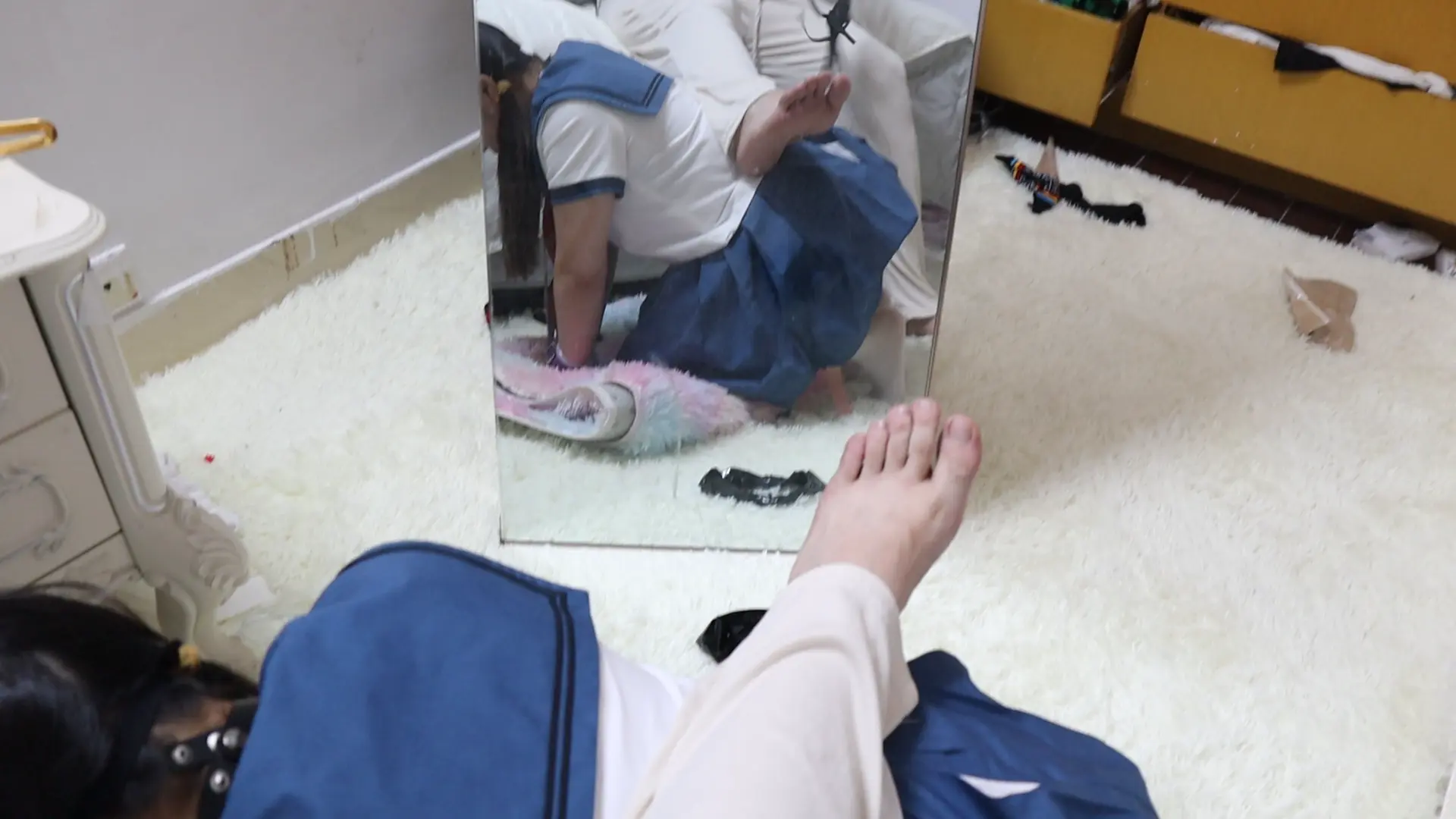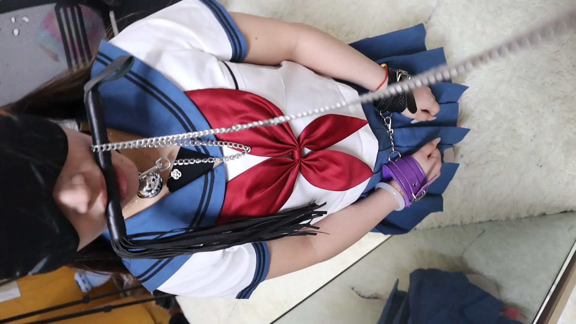 【荷仙少女短篇集】 清纯水手服萝莉铐撩 跪下镜子面前做女奴踏凳 被男主踩在身体上践踏 并由玩具震动 屈辱又羞愧 强制鞭打数数30下并不停喊谢谢主人 不停的被调教和抚摸 3