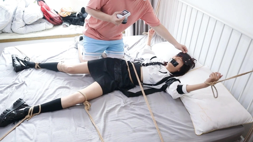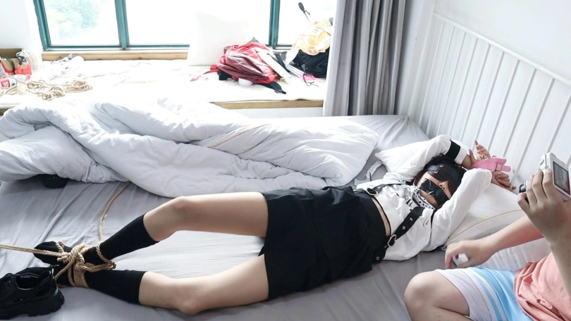 【荷仙少女】囚禁清纯少女B(回归早期作品回归最原始的束缚与挣扎超绝版作品),布条勒嘴与多重绳索的紧缚床缚,超痒超敏感,来回挣扎的无辜短发女孩的叫喊,加上语言羞辱的指令的反差直接崩溃 双视角感受