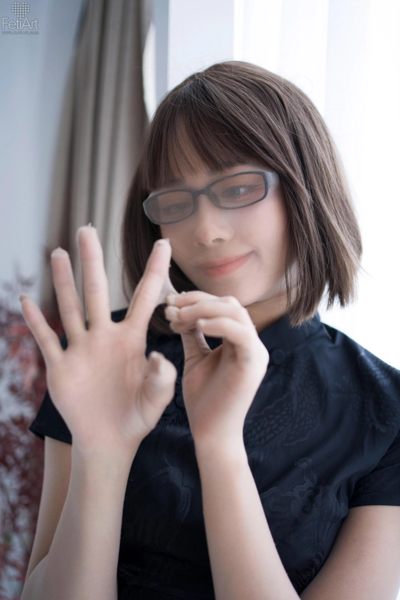 早晨的阳光透过窗纱照进来,把整个房间映成一个水色的空间。还懒洋洋地躺在床上的MMI徐徐地睁开眼睛,透过套在头上那层朦胧的丝袜看了看窗外,慢慢地爬了起来。她好像已经习惯了穿着内衣丝袜全包睡觉,连眼镜都还戴着。起床后的她挑选着出门要穿的衣服,”嗯,就这件黑色的小旗袍吧“,今天就是想打扮得成熟一点。换装完毕,她开心地玩抚摸着身上的丝袜,洋溢出满意的表情。