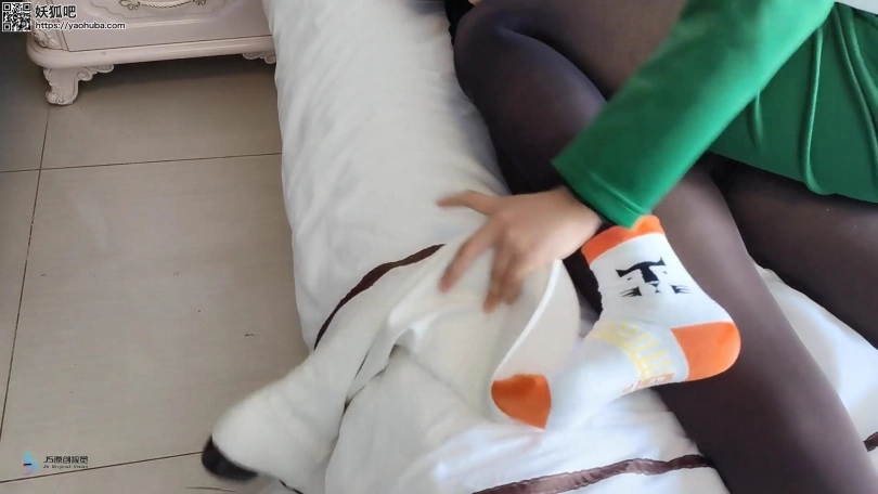女技师不断都亲吻抚摸女白领的胸部和[X_X],将她拖到床上,解开她脚上的绳子,脱掉她的靴子,女技师也脱掉了自己的靴子和棉袜。两个穿着连裤袜的女孩在床上缠绵在一起。