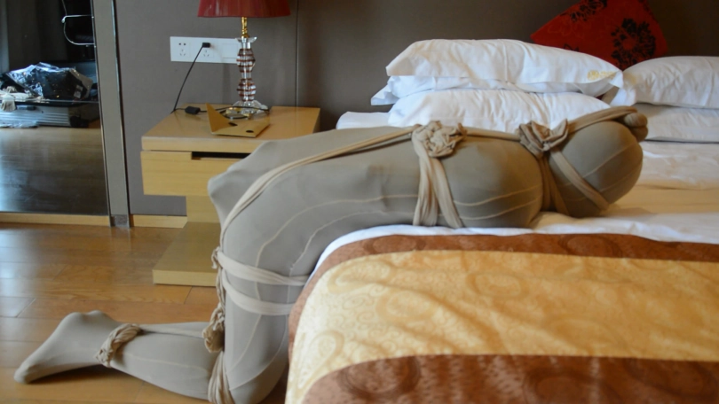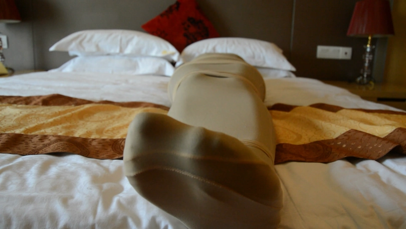 好了,这次是丝袜全包,第一场用的是紧身丝袜睡袋,第二场用的是超大连裤袜,嗯,就是我店里那两款卖的最多的。里面的妹子身高大概170左右,身材丰满,她都能塞进去,所以各位可以作为参考。