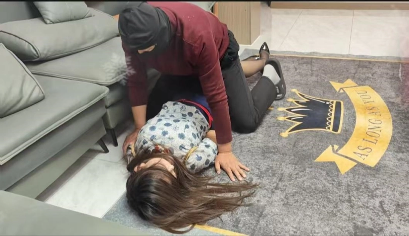 空姐茜茜下班回家,被歹徒尾随捂晕,捆绑猥亵,歹徒累了睡着,茜茜醒来砸晕歹徒,对歹徒进行疯狂报复,打的歹徒吱哇乱叫.....