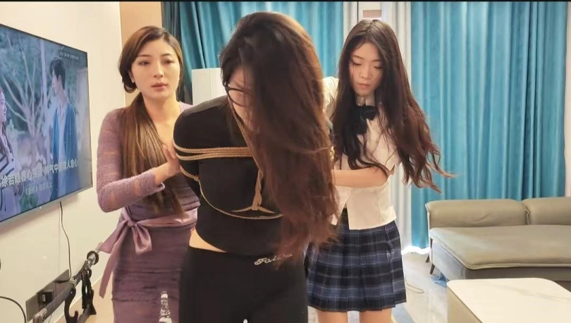 三美齐聚,佳佳、茜茜、小夏,佳佳取钱被茜茜盯梢,到家管教不好好学习的女儿小夏,结果被茜茜背后袭击,翻箱倒柜,找到取出来的二十万,还不肯罢休,继续威胁佳佳说出家里藏钱的地方,进到房间找钱的时候,正好爸爸回来了,把茜茜打晕制服,佳佳和女儿对着茜茜就是一顿收拾,最后送到她该去的地方。