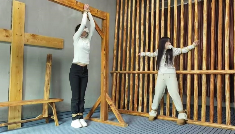 小夏和小慧是两名大三学生,在路边被两名人贩绑架抓走,关在一个废弃小院里面进行捆绑蹂躏,小夏和小慧最后挣脱捆绑,打晕一名人贩,成功逃走,下集是两名人贩盯梢她们,在树林又把她们抓获,变本加厉的进行了捆绑,拷打