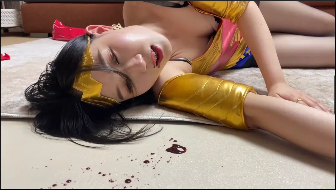 神奇女侠潜入搜集证据,被女魔头背后电击偷袭,女魔头:你们的女神在我手里现在多么软弱呀,今天我会把神奇女侠调教成神奇母狗。女魔头双手掐住神奇女侠的脖子,神奇女侠挣扎眼睛翻白后晕倒在地上。
