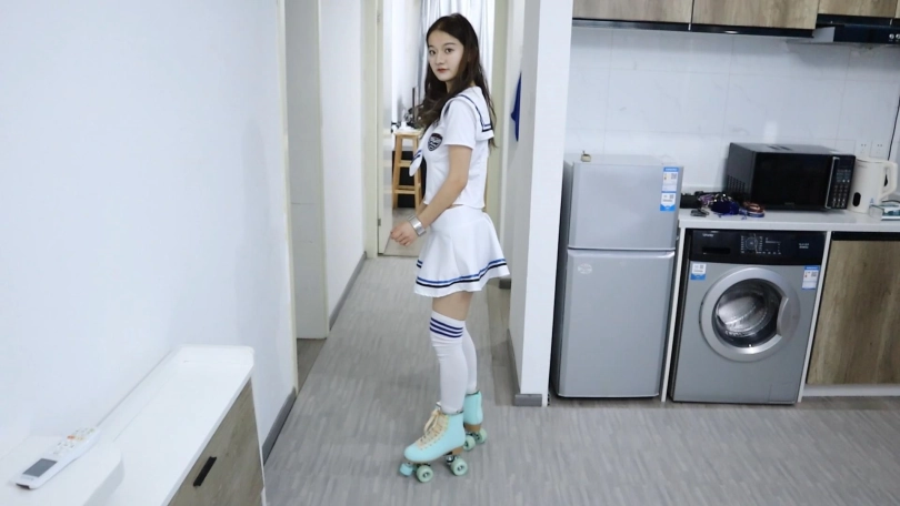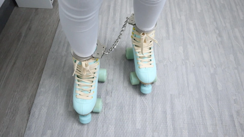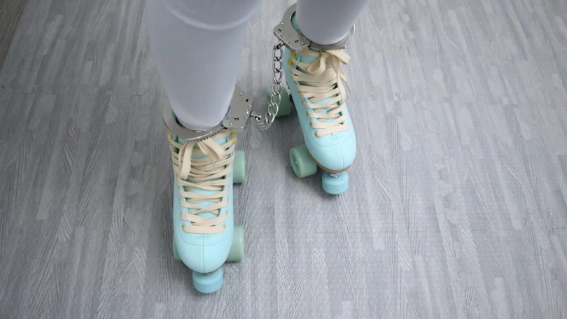 本期是个完全的新尝试,戴着镣铐木枷滑轮滑,JK白袜子,正好珊迪还练过一些轮滑,效果挺好,运动速度恰到好处,一共四个部分,镣铐、木枷、颈手铐、短脚铐!