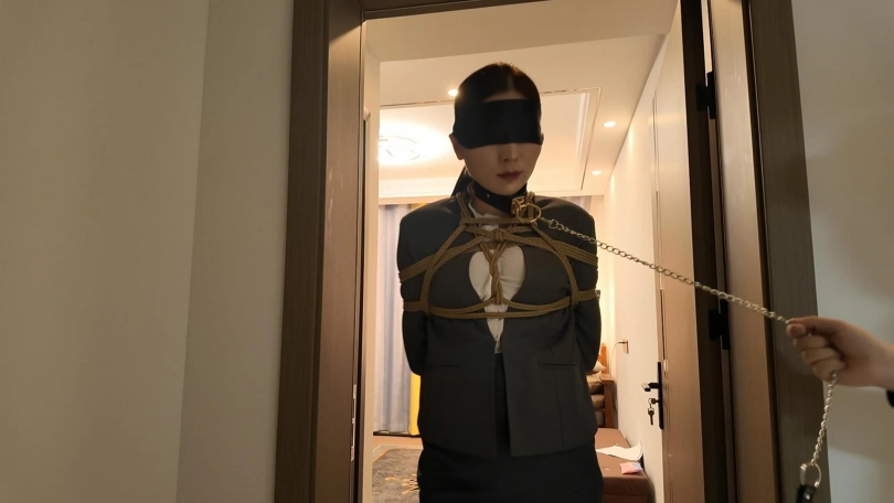 先把佳佳日式紧缚,关到笼子里面,等待客户到来体验,到了之后把佳佳从笼子里面牵出来,由于时间长了,佳佳双手早就麻木了,解开稍微休息了一会,先胶带捆绑,胶带缠绕嘟嘴,由于胶带堵嘴,和缠绕过于显得佳佳胸部很丰满,客户控制不住对佳佳上下其手,摸得佳佳呜呜只叫,胶带缠的太紧,不一会佳佳手就受不了,解开手之后,嘴都没有打开,就瘫软到地上