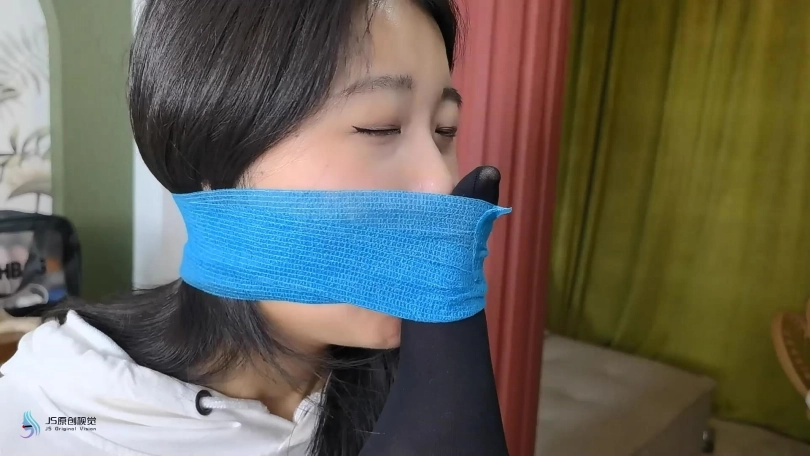 女劫匪伪装成外卖敲门,女孩将门打开,女匪拿出毛巾将女孩捂晕过去。女孩醒来发现自己双腿被折叠跪绑在地上,上身被身子吊起,两腿分别被两边绳子固定住。这时女匪走过来问家里钱在哪里,女孩不肯说,女匪拿来毛巾塞进女孩的嘴里,在用口球堵嘴,并对女孩说:“我有办法让你自己说出来。”说完女匪用棒棒刺激着女孩的裆部,在女孩的胸部放上TD并用胶带固定着。强烈的刺激上女孩疯狂的扭动着身体并发出呻吟声。没一会就晕了过去。