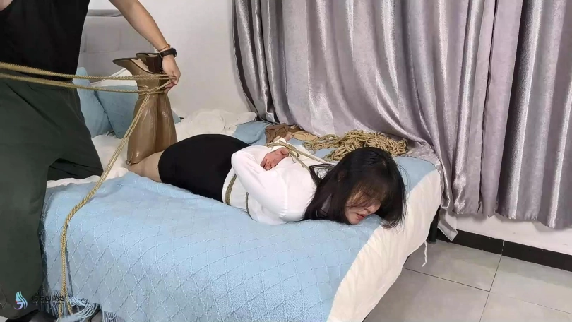 【JS】【李然】长靴驷马捆绑毛巾塞嘴胶布封堵TD震动胸棒棒刺激