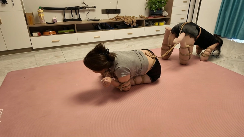 双M佳佳和小夏一起调叫,全部先口舌训练一下,犬姿捆绑,爬行,鞭打,重点来了,给她们两个绑上股绳,用股绳固定,拔河,赢了又奖励,具体谁能赢,还要看视频,三局两胜,比塞结束,终极享受,俩M按摩,手按不过瘾,命令她们两个都用胸部按摩,太舒服了