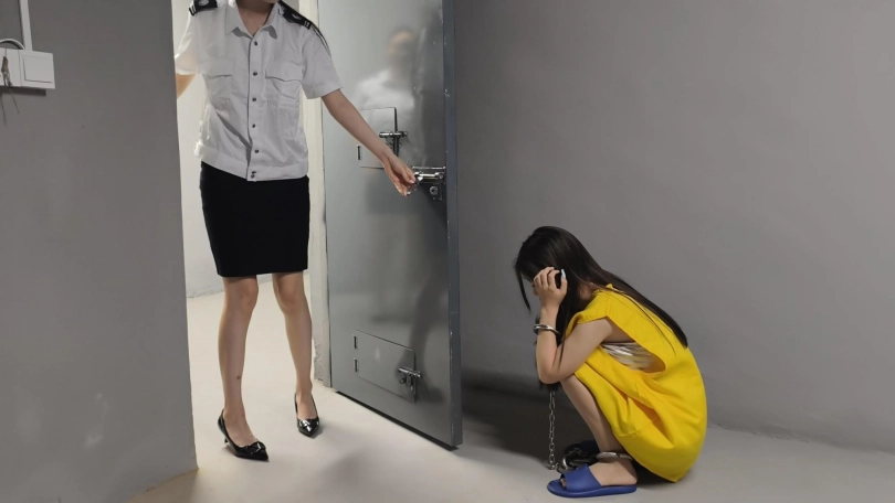 【忘忧社】模特小涵出演女犯本系列第四部,四女囚系列之拐卖儿童张倩被抓捕,一开始她拒不交代,被帽子姐姐铐起来脚尖着地,终于承受不住,手铐脚镣,审讯,放风,高颜值模特倾情演绎
