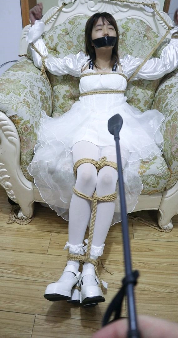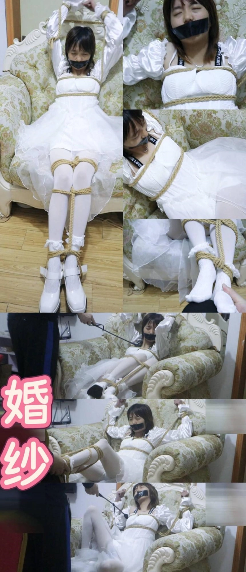 【荷仙少女】【婚纱少女B本本】祝婚快乐,还这么年轻清纯就穿上婚纱了,这不给好好绑起来玩弄玩弄一番吗,一袭婚纱+ 捆绑堵嘴,拿鞭子捅玩女孩B的身体,看着敏感的少女B本本痛苦的样子真是绝了(双视角)