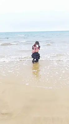 一屁股坐在海水上,不知道是什么样的奇妙感觉,后来又冒着危险走到礁石上,好在有惊无险,没有摔倒。