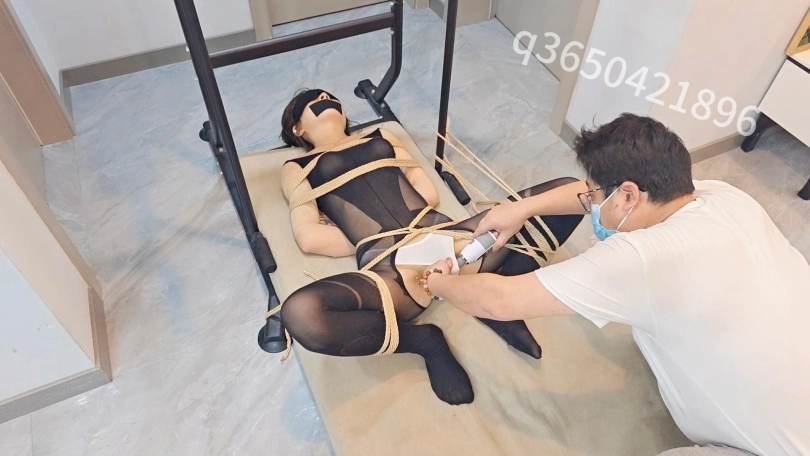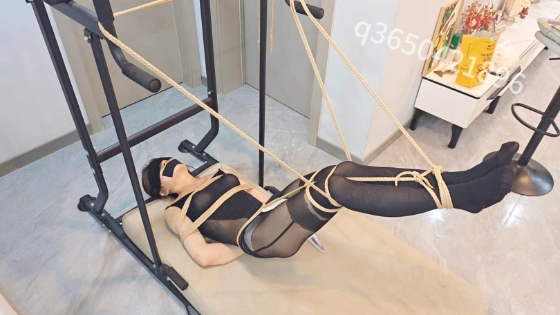 【欢乐谷】性感黑丝全包衣捆绑调教和捆绑放置睡觉到天亮