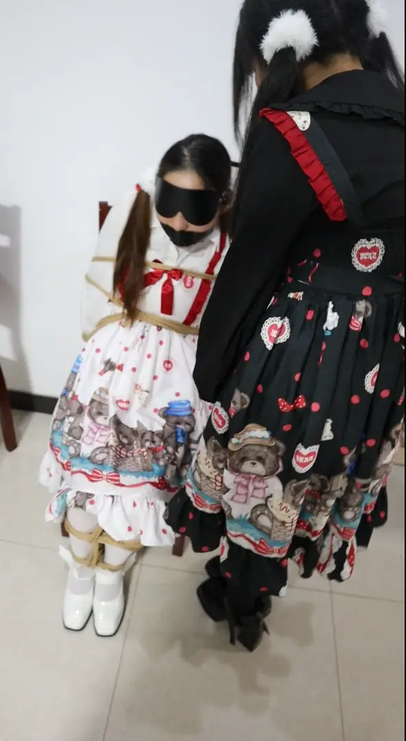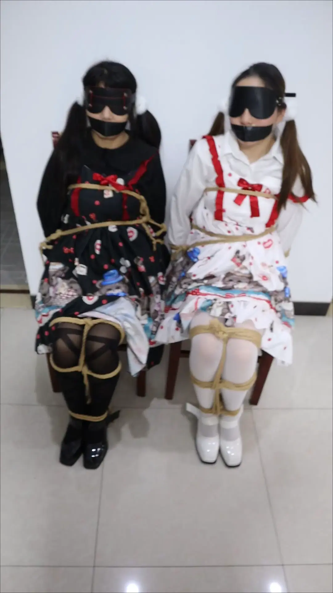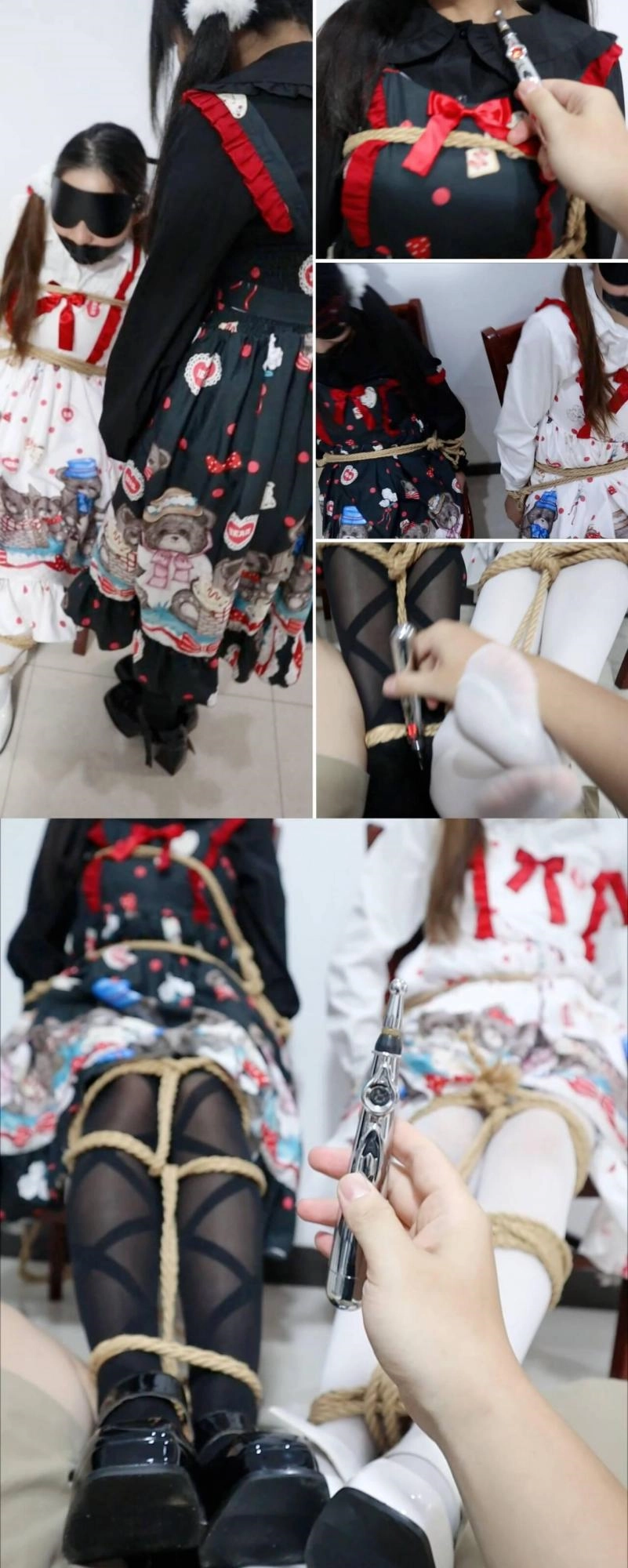 【荷仙少女】电击虐打两个洛丽塔少女物语,先让黑衣lo娘与男主共同欺负白衣lo娘,虐打电击这个可怜女孩,然后再把黑衣lo娘也绑在椅子上,互动折磨,两个一起虐打电击,听着两个女孩此起彼伏的惨叫声