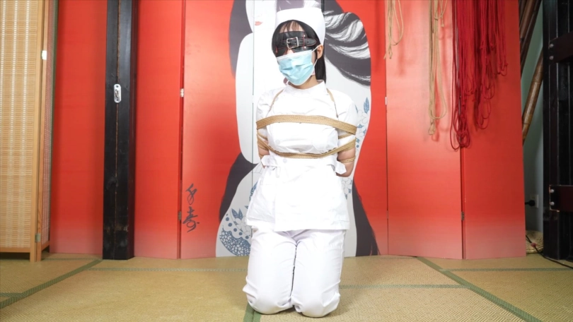 最终胶带封住嘴巴,用口罩把口球上的口水擦干净