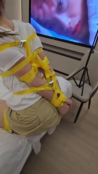 【小黑】捆绑带直臂紧缚,让她立在床头看着电视震动强高,没想她到这样站不稳啊的一声倒在床上了。