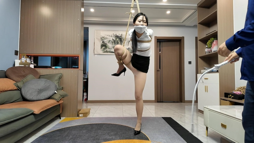 晓亚真是个纯M,受虐体质,被内裤堵嘴没有过瘾,还要继续玩,把她绑一个极限直臂,单腿吊起来,不是喜欢虐吗,那马鞭狠狠的抽她的屁股,抽完正好外卖到了,就让她吊着吧,喝粥去,她只能被吊着哭泣....放下来的时候胳膊一点都不能动了