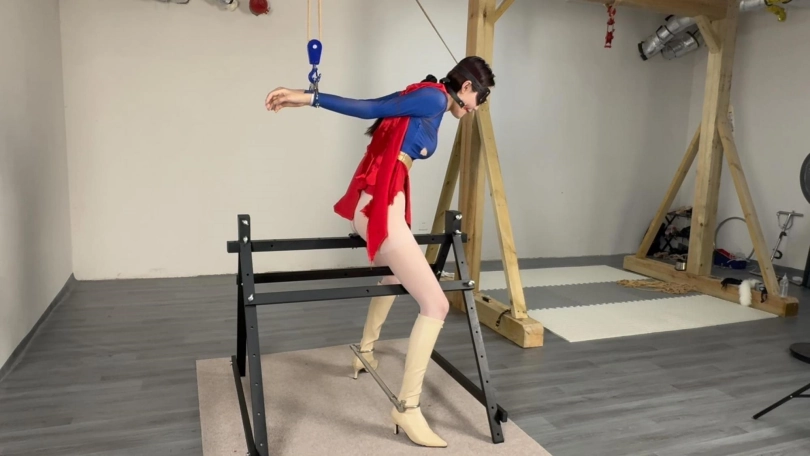 女超人战败后被抓到反叛者基地,处于昏迷中的女超人四肢被绑在木马上,[X_X]带着秒C神器(震动中),女超人醒来听到反叛者的意思是必须要折磨死自己,她对将要到来的折磨处于深深的恐惧之中,她将何去何从..........