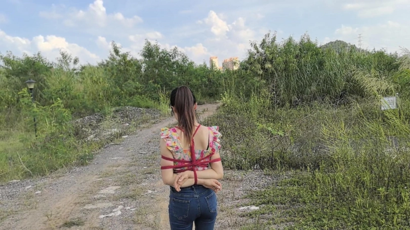 文文的户外体验还是挺刺激的,放了蛋蛋然后日式绑上,在山里走着,刚刚开机的时候她脸就红了,哈哈,就是口球带的太大的出去她戴不上,要不然更刺激了。