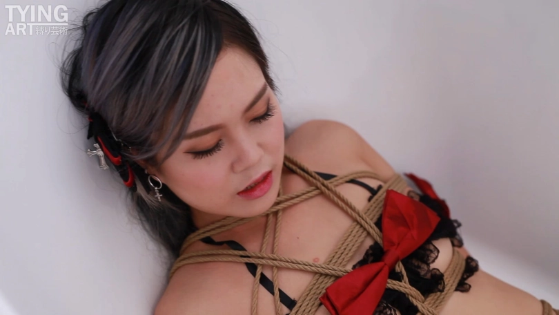 TYINGART 大胸长腿的情趣內衣網襪Helloween萬聖節小魔女 被麻绳紧缚