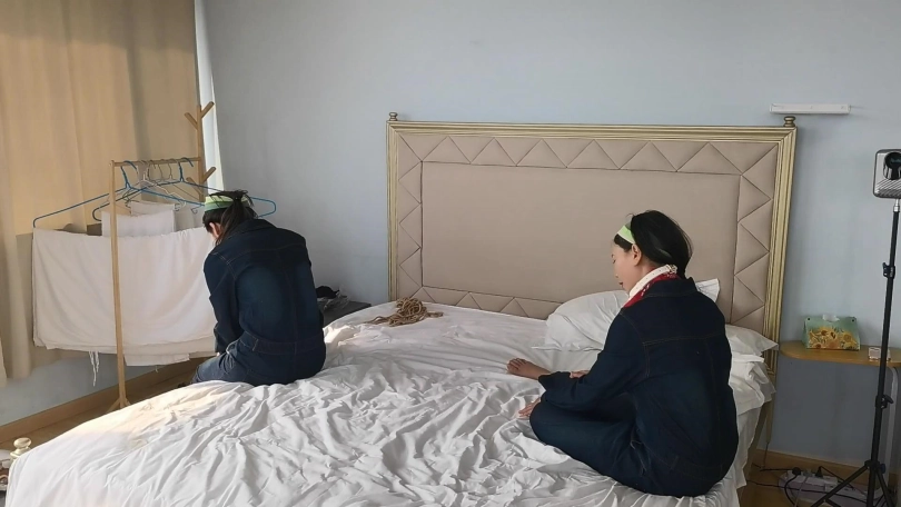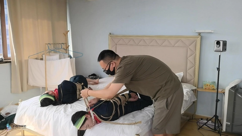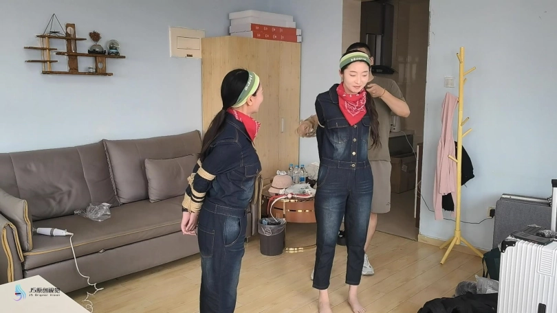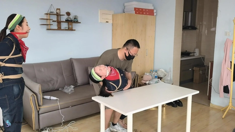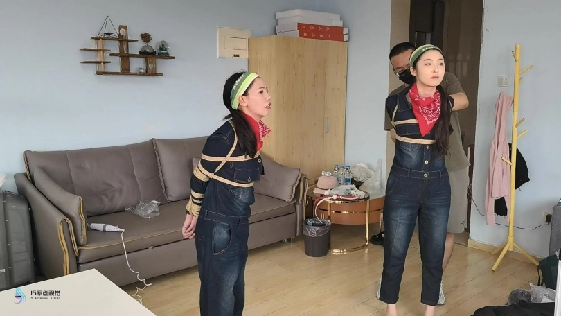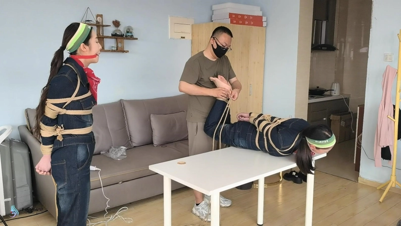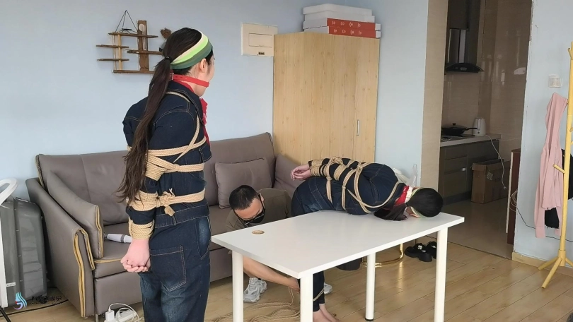 【JS】【宫怡】【欣妍】双女牛仔超紧直臂驷马口球堵嘴裸足放置