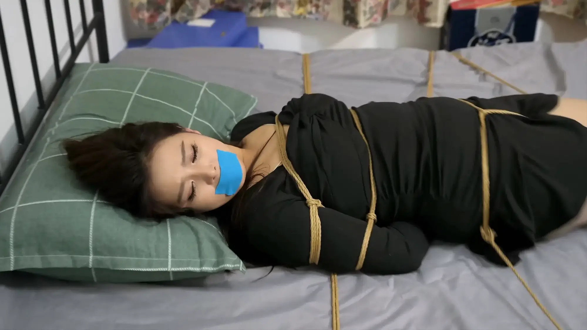 女老板一个人无助的被绑在床上,她拼命的挣扎,不想一个人被丢在冷清的房间,可是绳索把她全身都禁锢在床上哪里能够逃脱?渐渐地挣扎累了,再加上连日来的羞辱折磨,老板娘静静的睡着了,等待她的又将是怎样的经历?