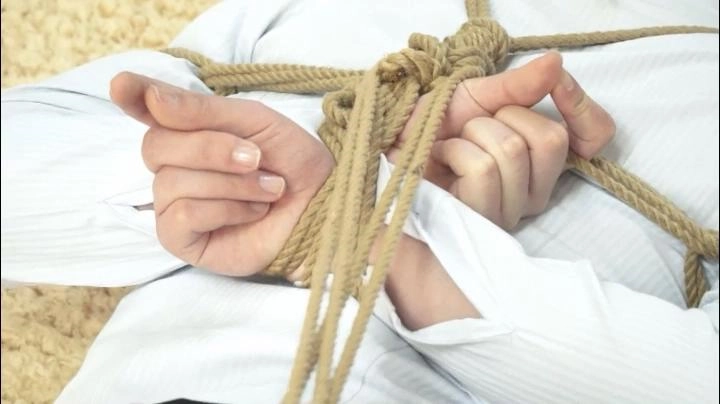 凶悍劫匪入室 逼迫二人有一人必须穿黑丝 秘书勇敢站出来 换上黑丝 又被劫匪逼迫把经理妹妹肉丝美腿捆上 再捆自己双脚!
