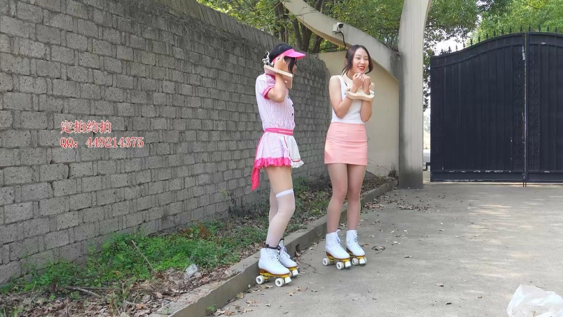 【子衿】菲菲妍如室外镣铐轮滑轮竞赛,带木枷脚镣口球轮滑鞋行走