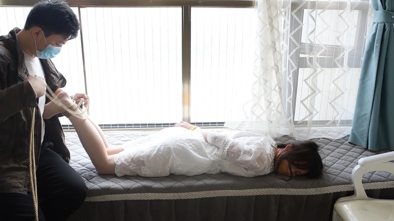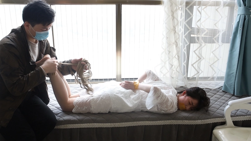 无助的筱筱只能发出无助的呻吟,反而更加激发匪徒的欲望,当她错过了唯一的逃生机会,等待她的只有无限的束缚。