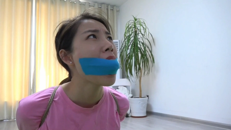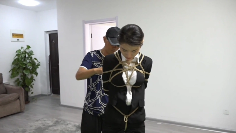 第2夜睡觉时美女试图逃跑被发现,惨被坏人加固捆绑,严密堵嘴。早上被强迫换上最初的ol装,用绳子好好打扮打扮,打包转移,美女无止境的监禁生活正式开始。