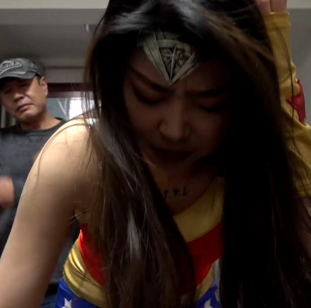 神奇女侠去解救人质,不料俩人都是对付神奇女侠的,女侠被暗算,被魔力的绳子困了起来,浑身无力,腿上的丝袜也被撕开,女侠痛苦的挣扎,反派又用电击棒,折磨女侠,女侠被折磨的即将昏死。