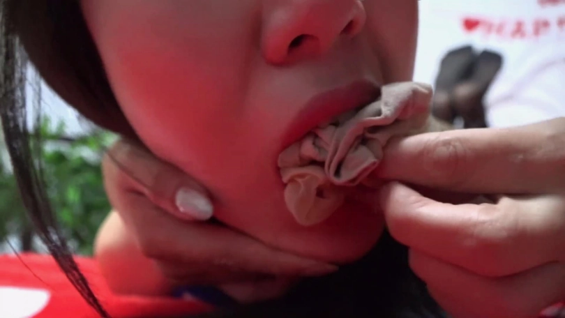 于是倒霉的琪琪又被大姐大李然驷马严厉捆绑,为了惩罚她想跑,李然干脆脱了自己脚上穿的两只肉色短丝袜——她特意准备穿了好几天没洗的,解开琪琪嘴里口球丢掉强行塞了进去,令琪琪呜呜恶心反胃干呕。