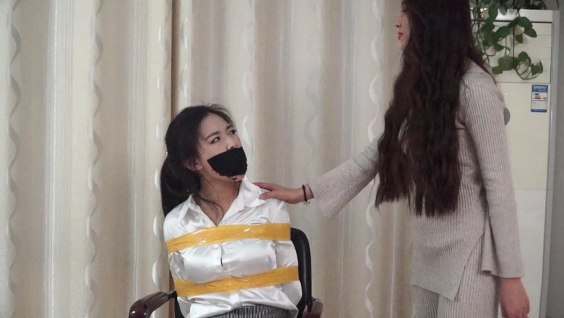 邢嘉妮与罗薇薇是同一家公司的同事,但是罗薇薇脾气不好总和邢嘉妮对立吵嘴,于是邢嘉妮找到一个机会逮住罗薇薇将其用黄胶带捆绑后押到自己家进行折磨。
