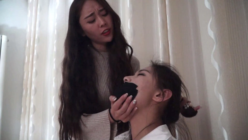 邢嘉妮先后用布团、丝巾、袜子等织物多次塞到罗薇薇的嘴里,以报复她平时总惹自己生气,不过罗薇薇威武不屈,坚决不向邢嘉妮低头,于是邢嘉妮一次次堵罗薇薇的嘴巴来羞辱她。