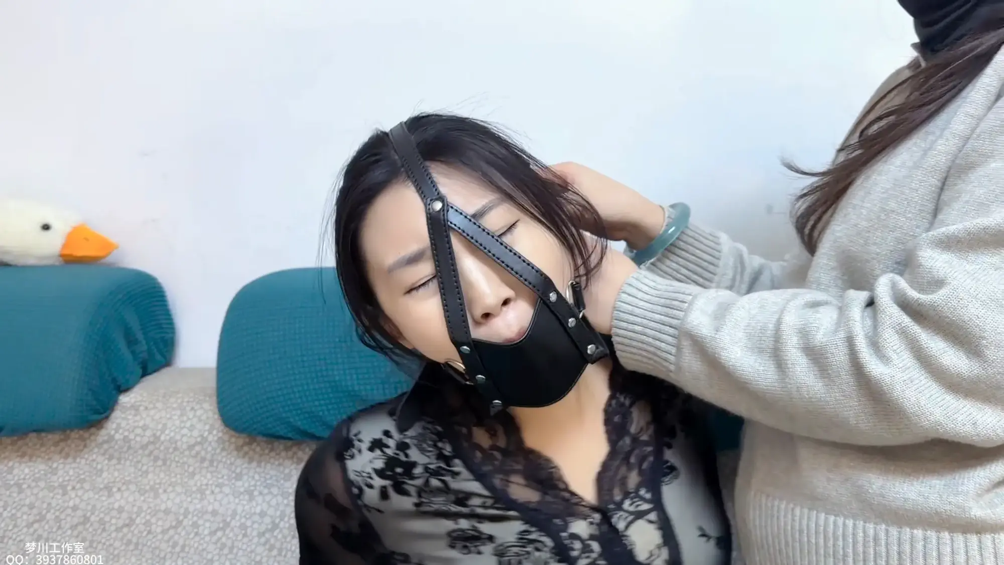 本集雯雯被黑肉双丝全包,再加扎带皮带项圈全面禁锢,绝望挣扎!