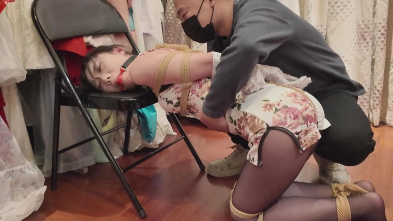 静雯在卧室休息被王伟强行捆绑玩弄后,
