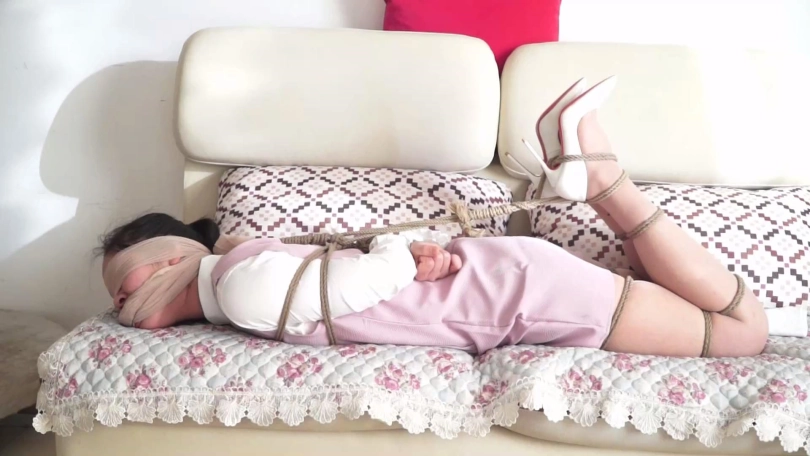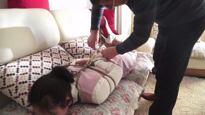 老王睡着后,静文开始疯狂挣扎,并挣扎开腿部的绳子。
