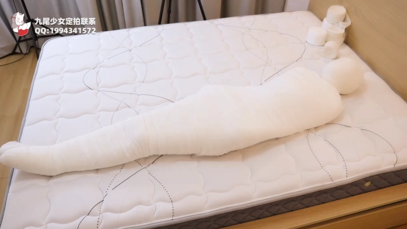 九尾妹子绷带木乃伊多层全包体验升级,8大卷绷带(长度40米*8)多层缠绕包裹,中间加上大块纱布包裹,木乃伊经历实录,