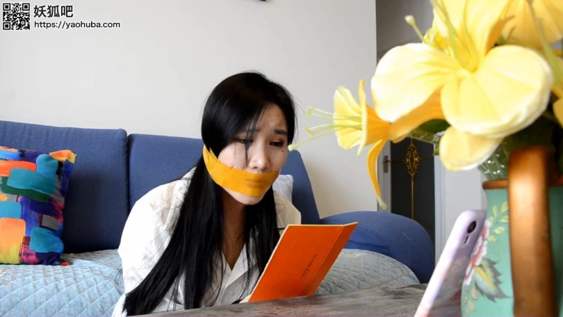 得意客工作室,订拍作品,服装两套,先后封嘴朗诵古诗和现代诗,设定中特殊胶带封嘴,导致诗涵(吴晗)的窘迫无人看到,对着镜头呜呜呜大喊,我被封嘴了!