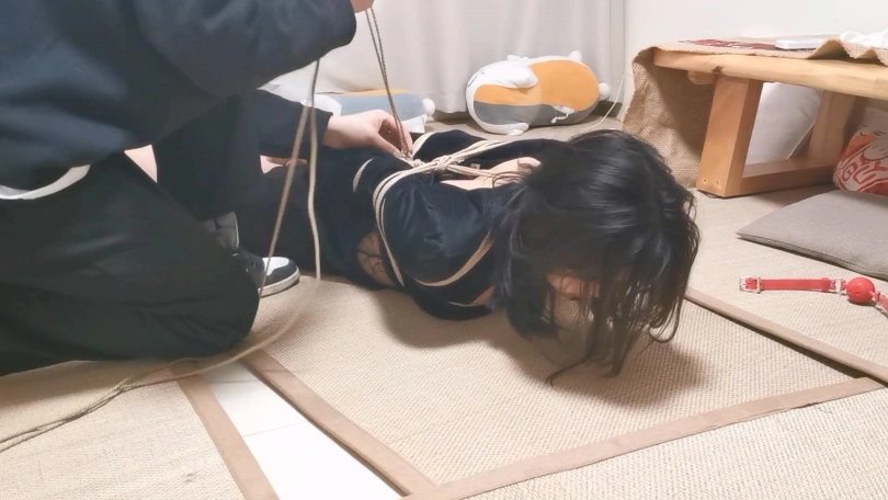 【绳师奥特曼】婵婵直臂跪缚+驷马大口球放置